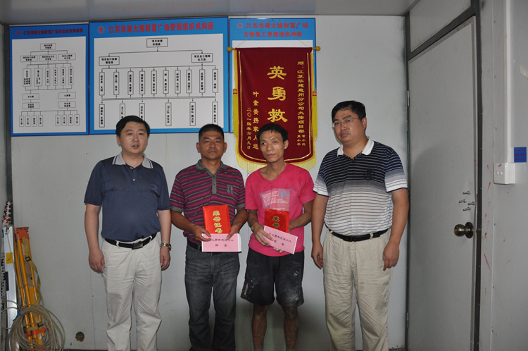 會上,惠州公司副總經(jīng)理、總工程師龐文榮、分工會主席王健代表分公司經(jīng)理室和工會向肖小平、黃小江兩位同志發(fā)放“見義勇為先進個人”證書,向大隆財富廣場項目部發(fā)放“見義勇為先進集體”證書,并給予一定數(shù)額的現(xiàn)金獎勵。同時號召大家向兩位同志學(xué)習(xí),學(xué)習(xí)他們舍己救人的崇高精神,學(xué)習(xí)他們樂于助人的高尚品德,為樹立公司良好精神面貌、傳遞社會正能量做出新的貢獻。