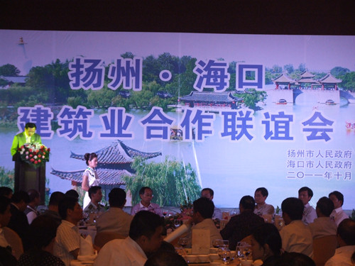 10月20日,揚(yáng)州·海口建筑業(yè)合作聯(lián)誼會(huì)暨1-3季度揚(yáng)州建筑業(yè)形勢(shì)分析會(huì)議在海口市文華大酒店隆重召開,揚(yáng)州市委常委、副市長(zhǎng)陳揚(yáng)、市人大副主任高瑞芹、市政協(xié)副主席朱正海等領(lǐng)導(dǎo)參加了會(huì)議。陳揚(yáng)副市長(zhǎng)指出此次會(huì)議主要是認(rèn)真貫徹落實(shí)揚(yáng)州市第六次黨代會(huì)精神,回顧總結(jié)今年以來全市建筑業(yè)運(yùn)行發(fā)展情況,研究部署下一階段重點(diǎn)工作,特別是分析研判國(guó)務(wù)院加快建設(shè)海南國(guó)際旅游島的政策機(jī)遇,進(jìn)一步拓展深耕海南建筑市場(chǎng),推動(dòng)建筑業(yè)總量擴(kuò)大、績(jī)效提升,確保全面完成全年目標(biāo)任務(wù)。高瑞芹副主任宣讀了“關(guān)于表彰2010年度揚(yáng)州市建筑業(yè)綜合實(shí)力20強(qiáng)企業(yè)的決定”,江蘇省華建建設(shè)股份有限公司榮獲“房屋建筑類10強(qiáng)企業(yè)”,海口市建設(shè)局卓桂勇副局長(zhǎng)介紹了海口市建筑市場(chǎng)情況,王宏副總經(jīng)理代表市建工控股公司、華建公司作了交流發(fā)言。