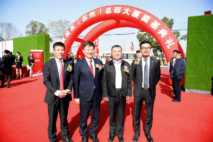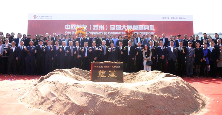 王宏董事長應邀出席中歐校友(蘇州)總部大樓奠基典禮 時間:2018-10-29 4487 10月27日,中歐校友(蘇州)總部大廈奠基典禮在蘇州工業(yè)園區(qū)隆重舉行,江蘇華建董事長王宏應邀出席。奠基儀式開始前,王宏董事長與中歐校友總會會長、中城聯(lián)盟輪值主席、朗詩集團董事局主席田明親切交談。王董事長對江蘇華建被選為總包單位參與大廈建設表示很榮幸,表態(tài)將以“魯班獎”標準抓好項目施工,努力打造成精品工程、標志工程、形象工程,為中歐校友會的發(fā)展盡心、盡力。田會長感謝江蘇華建對大廈建設的大力支持,希冀雙方的合作更加廣泛、更加深入。江蘇華建副總經理、上海區(qū)域公司總經理楊杰一同出席。