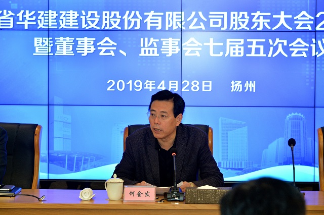 4月28日,江蘇華建股東大會2019年會暨董事會、監(jiān)事會七屆五次會議在揚(yáng)州華城科技廣場召開。公司股東單位代表和董事、監(jiān)事出席會議,公司高級管理人員、各分支機(jī)構(gòu)和總部各部室負(fù)責(zé)人、律師團(tuán)律師列席會議,王宏董事長主持會議,揚(yáng)州市副市長何金發(fā)到會并致辭。