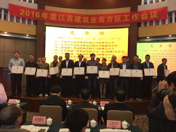 海南分公司榮獲“2015年度江蘇進粵、桂、閩、瓊施工先進企業(yè)”