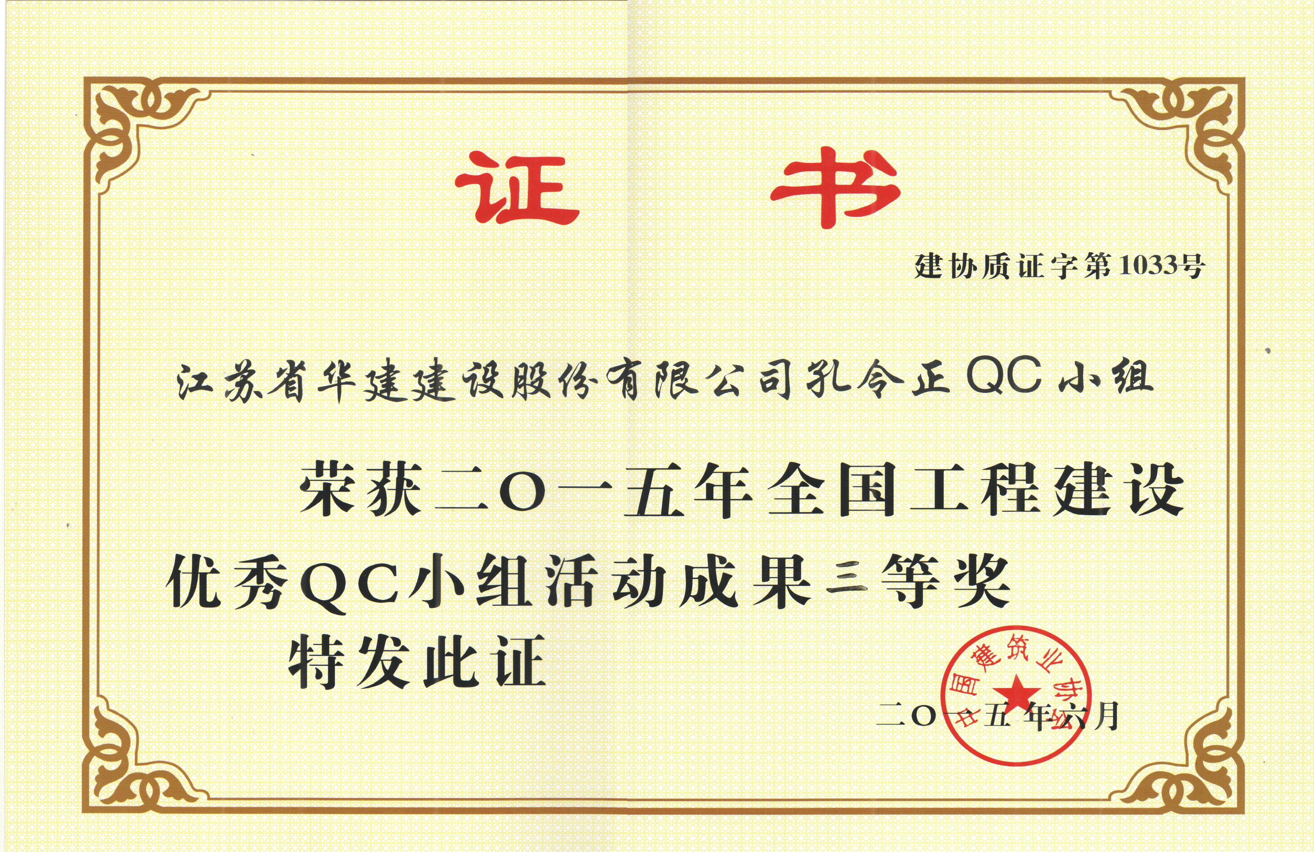 6月23—25日,由中國建筑業(yè)協(xié)會(huì)舉辦的“2015年全國工程建設(shè)優(yōu)秀QC小組活動(dòng)成果交流會(huì)”在云南昆明舉行。珠海區(qū)域公司“江蘇省華建建設(shè)股份有限公司孔令正QC小組” 經(jīng)江蘇省建筑行業(yè)協(xié)會(huì)推薦參加交流會(huì),其成果《剝蝕丘陵地貌多形截面鋼筋混凝土灌注樁施工新方法》榮獲中建協(xié)QC成果三等獎(jiǎng)。中國建筑業(yè)協(xié)會(huì)QC成果獎(jiǎng)是建筑領(lǐng)域QC成果最高獎(jiǎng)項(xiàng),該獎(jiǎng)項(xiàng)的獲得是對公司在技術(shù)質(zhì)量管理工作方面的充分肯定。此外根據(jù)該項(xiàng)成果編寫的工法還獲得2014年度江蘇省省級工法。