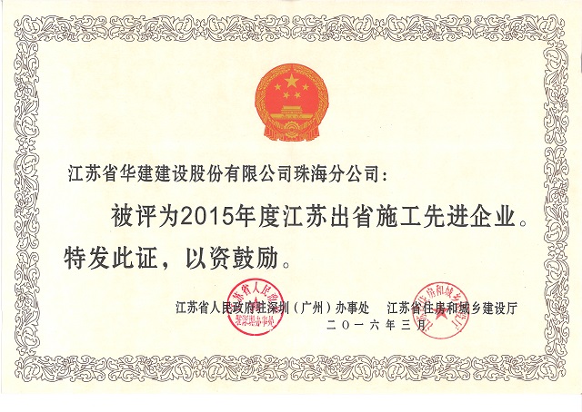 公司被評為“2015年度江蘇出省施工先進企業” 時間:2016-03-30 3567 3月24日,江蘇省人民政府駐深圳(廣州)辦事處和江蘇省住房和城鄉建設廳在廣西南寧召開2016年度江蘇建筑業南方區工作會議,珠海公司被表彰為“2015年度江蘇出省施工先進企業”,公司副總經理、總會計師馮喜平榮獲“江蘇出省施工優秀企業經理”稱號,公司副總經理、總工程師周學軍榮獲“江蘇省出省施工優秀建造師”稱號;徐平、陳榮被評為“江蘇省進粵、桂、閩、瓊施工質量安全先進個人”;趙永濤被評為“江蘇省進粵、桂、閩、瓊施工經營財務先進個人”。