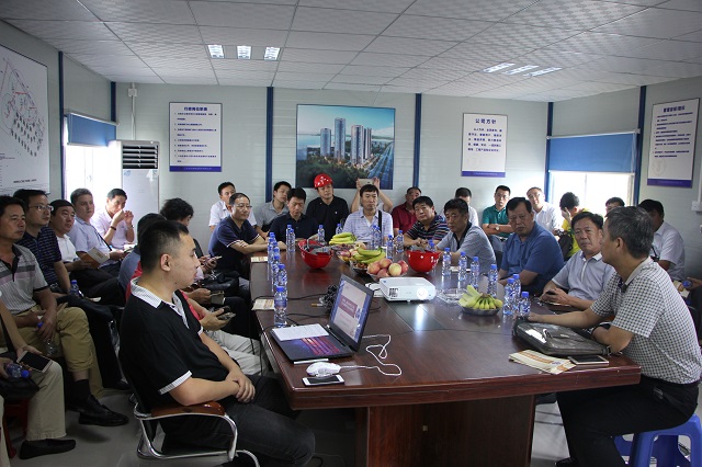 9月8日,在珠海公司總工程師周學(xué)軍陪同下,由深圳公司常務(wù)副總經(jīng)理、總工程師吳碧橋帶隊(duì),深圳公司各工程處生產(chǎn)主任、技術(shù)主任、項(xiàng)目經(jīng)理等一行33人到珠海公司承建的帝景灣山莊和晉和天慶花園項(xiàng)目觀摩交流鋁合金模板施工技術(shù)。周總通過圖文并茂的PPT講解和現(xiàn)場實(shí)地觀摩詳細(xì)介紹了鋁合金模板施工技術(shù)特點(diǎn)以及與傳統(tǒng)木模板施工的差別,對施工過程關(guān)鍵節(jié)點(diǎn)做法、成本控制做了講解。雙方人員針對細(xì)節(jié)和質(zhì)量控制問題進(jìn)行了深度交流。