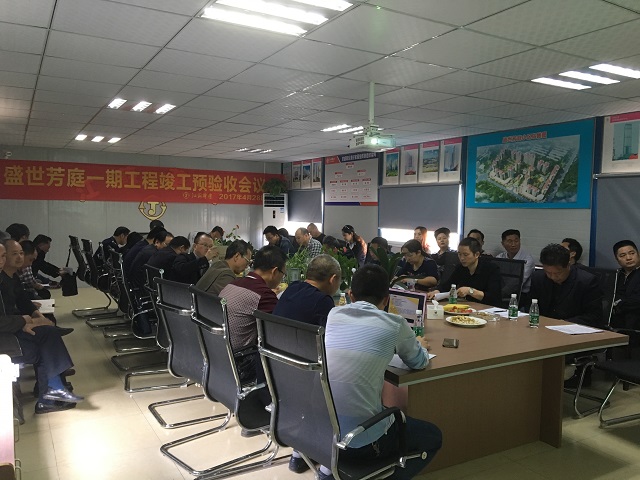 4月28日,廣安盛世芳庭一期工程預驗收會議在項目會議室召開,廣安官盛新區管委會副主任鐘太剛主持會議。經項目勘察、設計、監理、區住建局、質監站、園林所、環衛所、中橋辦事處等單位和業主現場代表實測檢查、分別總結匯報后,一致同意工程驗收合格。