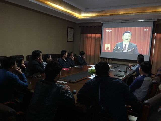 珠海區域公司組織黨員干部職工收看十九大直播 時間:2017-10-18 3278 2017年10月18日上午9點,中國共產黨第十九次全國代表大會在北京隆重開幕,江蘇華建珠海分公司、重慶分公司分別組織公司機關全體黨員干部職工集體收看十九大直播。 部分出差在外的員工也積極爭取時間用手機等移動設備收看收聽大會報告。同時,區域公司所有項目部也通過電子顯示屏、懸掛條幅等方式熱烈祝賀黨的十九大勝利召開。