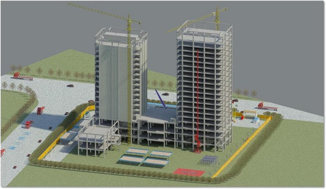 橫琴隆義廣場項目位于珠海橫琴自貿區,工程造價為16000萬元,建筑面積約60000平方米,由1棟17層和1棟20層的塔樓組成,最大高度為85.8米,合同工期730天。建成之后將成為橫琴島上的高檔酒店和寫字樓。該工程運用BIM技術,珠海公司聯合華建設計院建立項目BIM設計模型,完成了多專業碰撞檢查、模型二次深化設計、凈高分析等工作。此外,公司在項目施工中還基于高精度BIM施工模型做到了施工臨時場地布置、BIM樣板引路、機電管線綜合優化、鋁合金模板預拼裝、腳手架系統深化設計、動態可視化交底、施工進度計劃及造價控制等工作的優化管理,項目結合二維碼的協同管理云平臺,實現了“工廠預制加工”“掃碼組裝”“二維碼安全技術交底”“設備信息錄入”等智能化操作,在保證施工質量的同時也極大地提高了協同工作的效率,使項目在施工成本、進度、安全、質量等方面的管理效率得到了巨大提升。