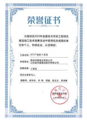 近日,從中國建筑業協會傳來喜訊,由江蘇華建揚州分公司總包承建的城建廣場項目榮獲2023年度...