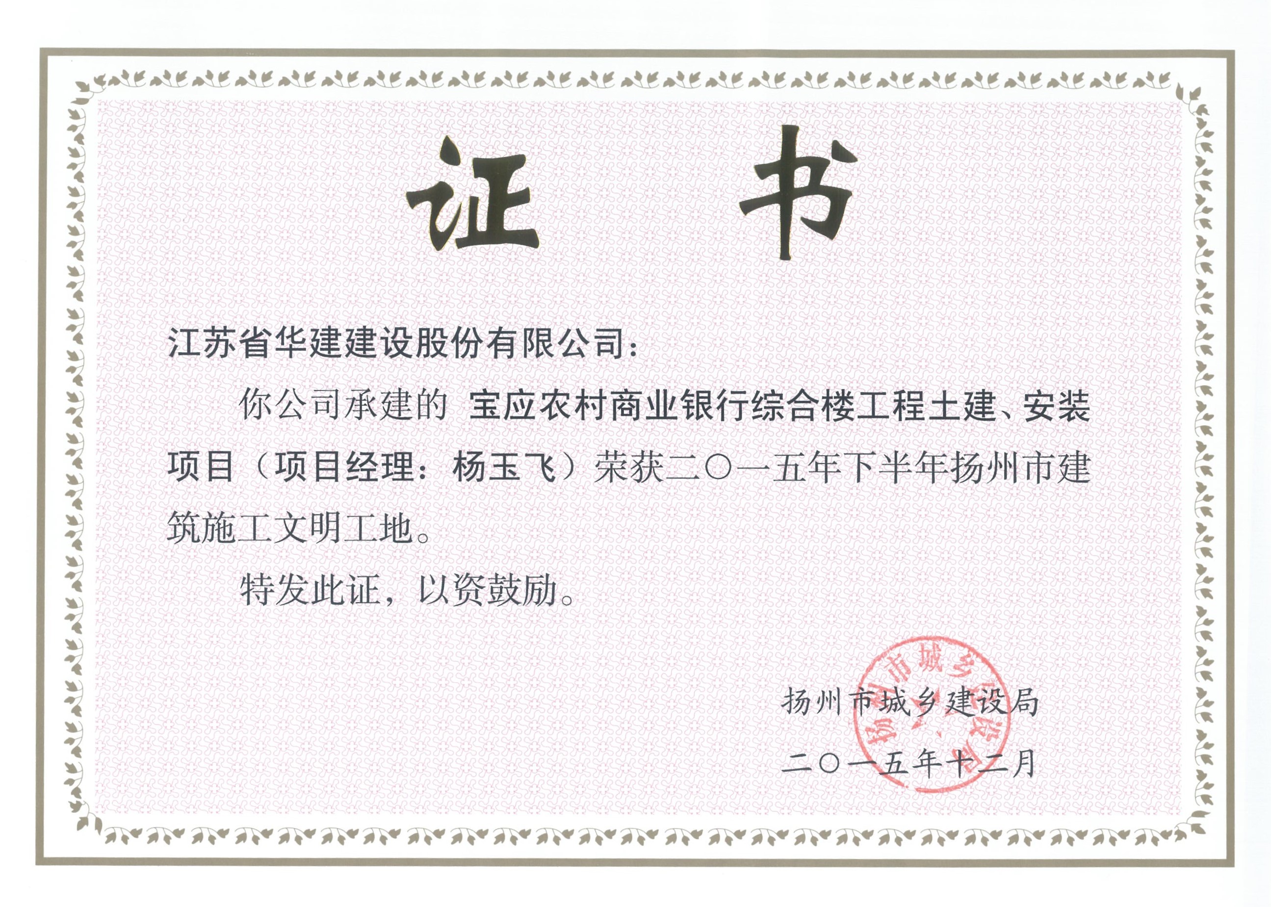 市文明工地——寶應農村商業銀行綜合樓