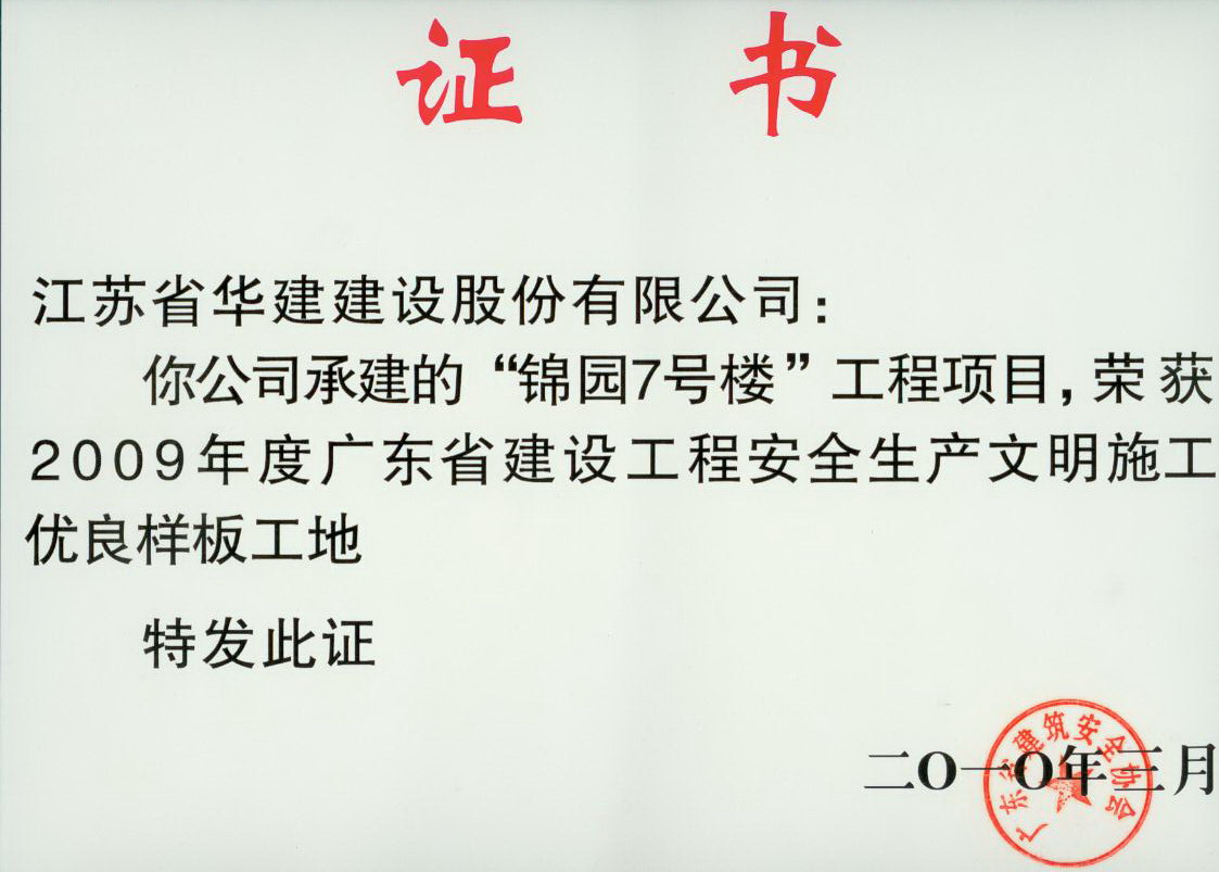 2010年錦園7#樓安全文明省樣板