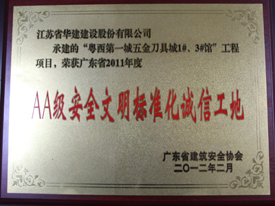 2011年陽江刀剪城項目廣東省AA級安全文明標準化誠信工地