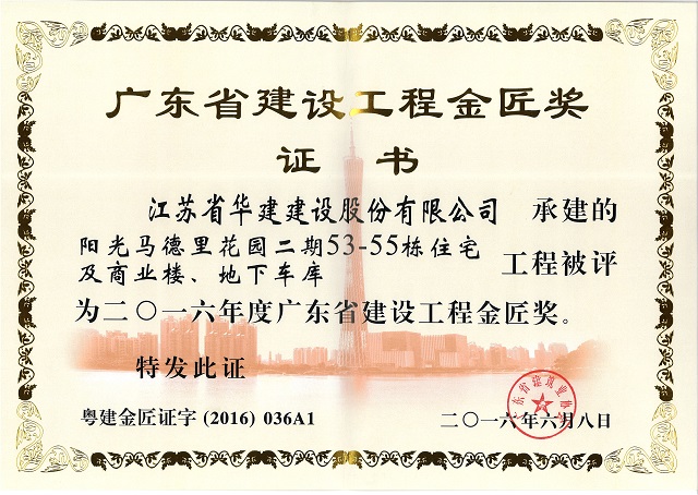 2016年度陽光馬德里53-55棟建設工程廣東省優質獎
