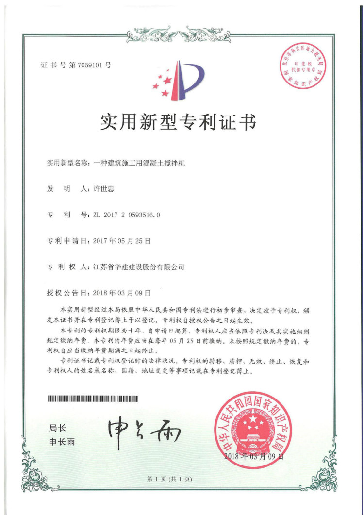 江蘇華建再獲1項發明專利、3項實用新型專利 時間:2018-06-06 3269 日前,從國家知識產權局傳來喜訊,江蘇華建上海區域公司發布的《一種用于砌體結構墻體后開洞的夾緊梁裝置及其施工方法》獲得發明專利授權(專利號:ZL201610262053.X),《一種建筑板材角磨機》(專利號:ZL201720592798.2 )、《一種建筑施工用鋼筋切斷機》(專利號:ZL201720593659.1 )、《一種建筑施工用混凝土攪拌機》(專利號:ZL201720593516.0 )獲得實用新型專利授權。