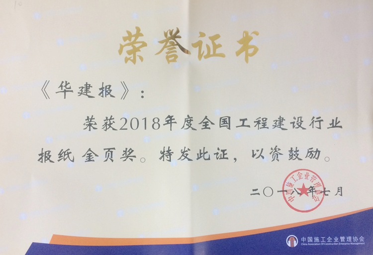《華建報(bào)》再獲“全國(guó)工程建設(shè)行業(yè)報(bào)紙金頁獎(jiǎng)” 時(shí)間:2018-07-23 5128 7月18日至20日,中國(guó)施工企業(yè)管理協(xié)會(huì)2018年度工程建設(shè)企業(yè)文化論壇暨通聯(lián)員工作會(huì)議在蘇州召開。公司內(nèi)刊《華建報(bào)》再度獲評(píng)“2018年度全國(guó)工程建設(shè)行業(yè)報(bào)紙金頁獎(jiǎng)”,公司翟法寶獲評(píng)“2018年度中國(guó)施工企業(yè)管理協(xié)會(huì)優(yōu)秀聯(lián)絡(luò)員”。